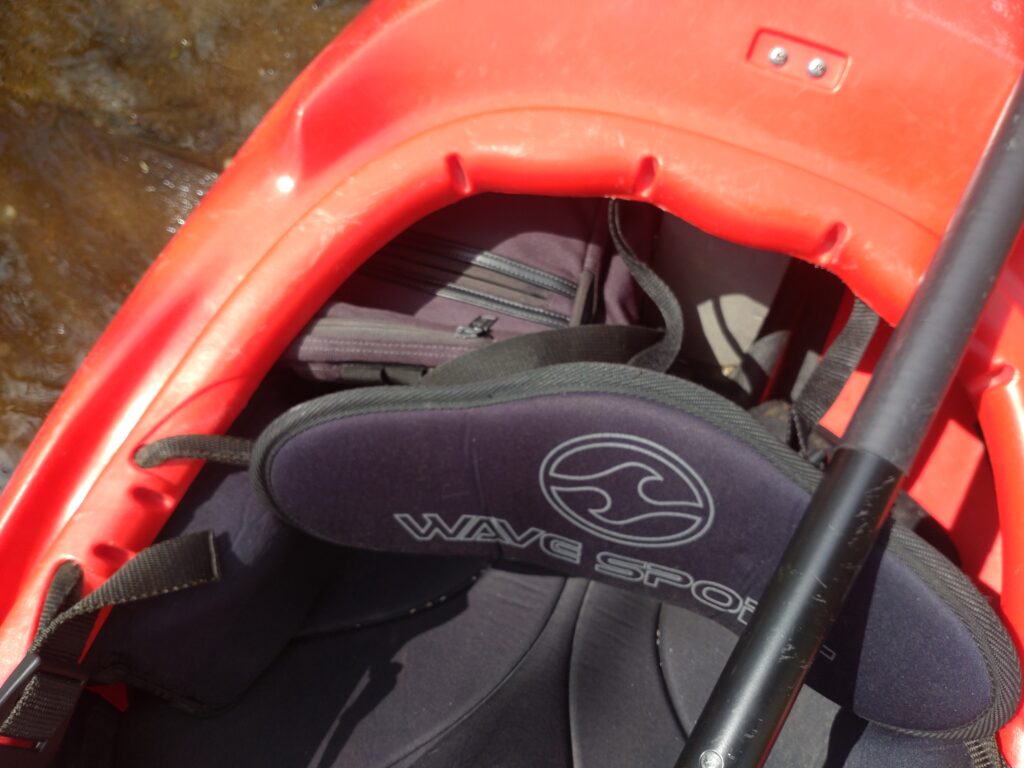 「一番の急所、」ポイントでは川上に船首を向けていい位置に入ると、リバーサーフィンという波の中に停滞できる遊びができ、波乗り感覚でとても楽しいです!