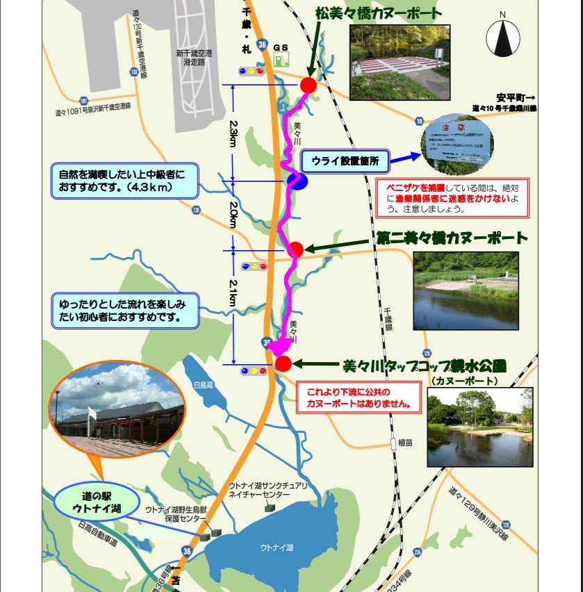仲間同士で都合が合わない時や一人ゆったりした時間を過ごしたい時の選択として、流れが緩やかで深さも比較的浅い、安全な美々川での一人往復川下りを候補に入れて、カヤックを楽しんいただければと思います!