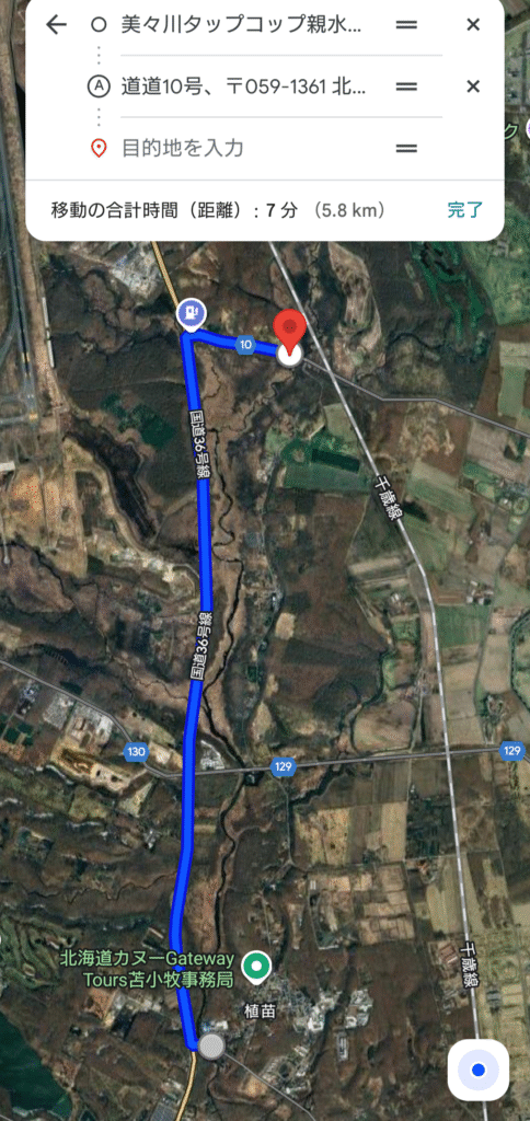 - 到着地点まで車で(タップコップ親水公園カヌーポートへ)