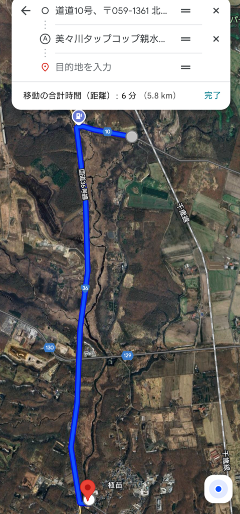 到着地点まで車で(タップコップ親水公園カヌーポートへ)